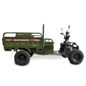 The Etec Quad Bakkie Xtreme features a 2000W motor, 400kg load capacity, and a 25–35km range. With a high/low gearbox, rear differential, and dropside cargo bin, it’s perfect for farms, workshops, and rugged off-road transport.